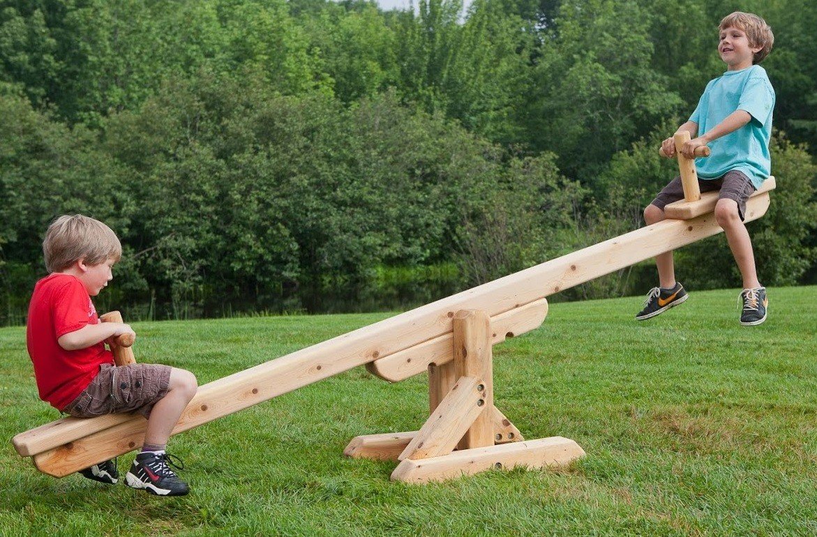 - Schaukelpendel. Die einfachste Art der Schaukel, die aus Brettern und Hanf hergestellt werden kann. Die Grundlage dieser Art von Schwung ist das Hebelprinzip. Kinder sitzen an verschiedenen Enden des Brettes und setzen es in Bewegung, indem sie ihre Füße vom Boden abdrücken.