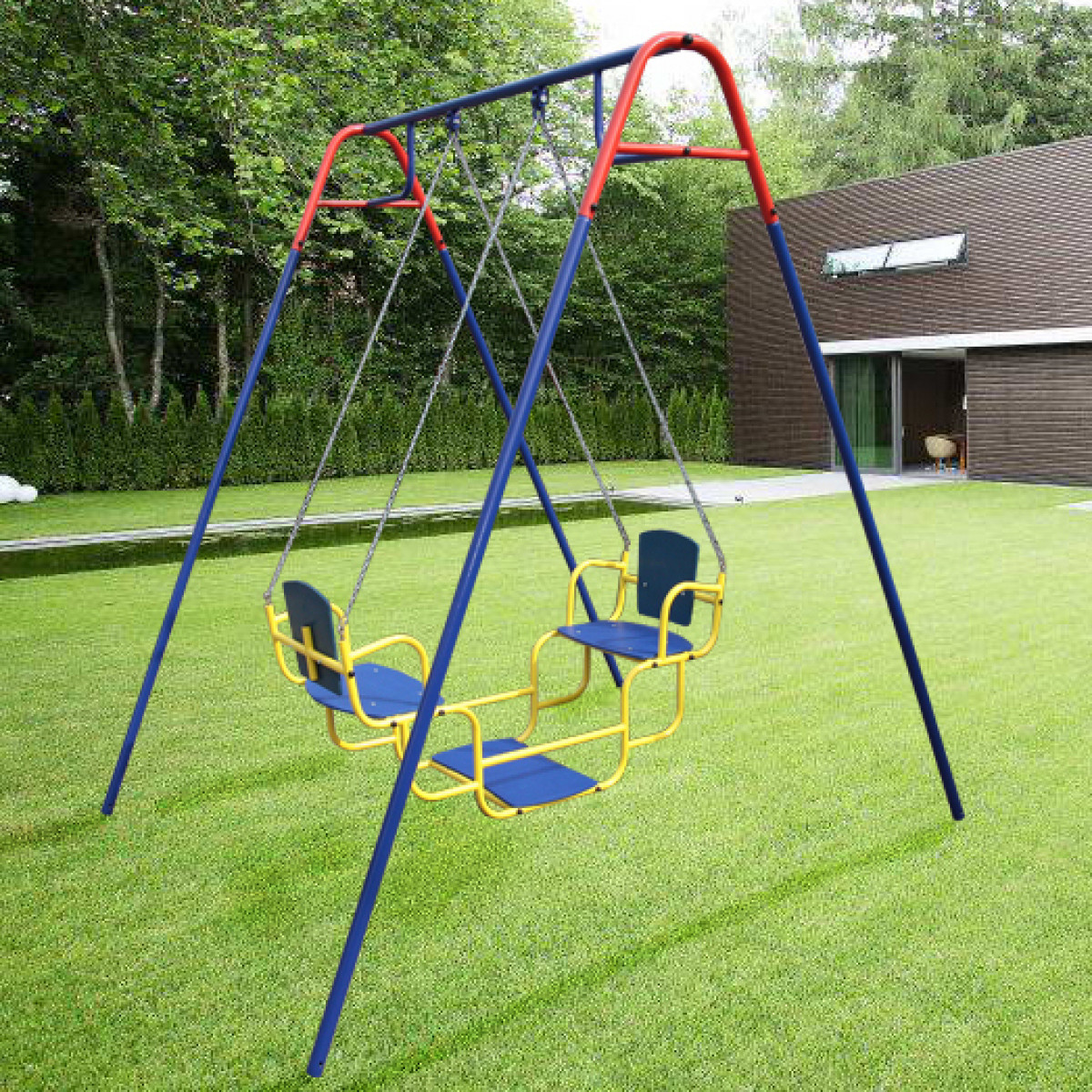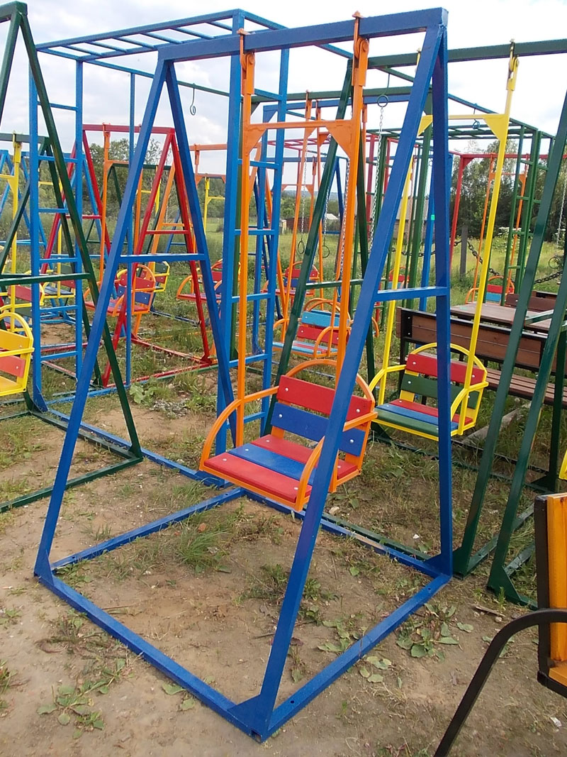 - Spiegelschaukel. Sie gehören zu der stationären Klasse des Rahmentyps (sie sind im Boden montiert, haben einen Metallrahmen). Komplett aus Metall, haben eine starre Struktur. Die Sitze liegen einander gegenüber, jedes Kind wird abwechselnd in Bewegung gesetzt. Minus: nehmen viel Platz ein, schwer, erfordern eine kompetente Installation. Plus: entwickeln Sie Muskelkoordination, kann von einer Person benutzt werden.
