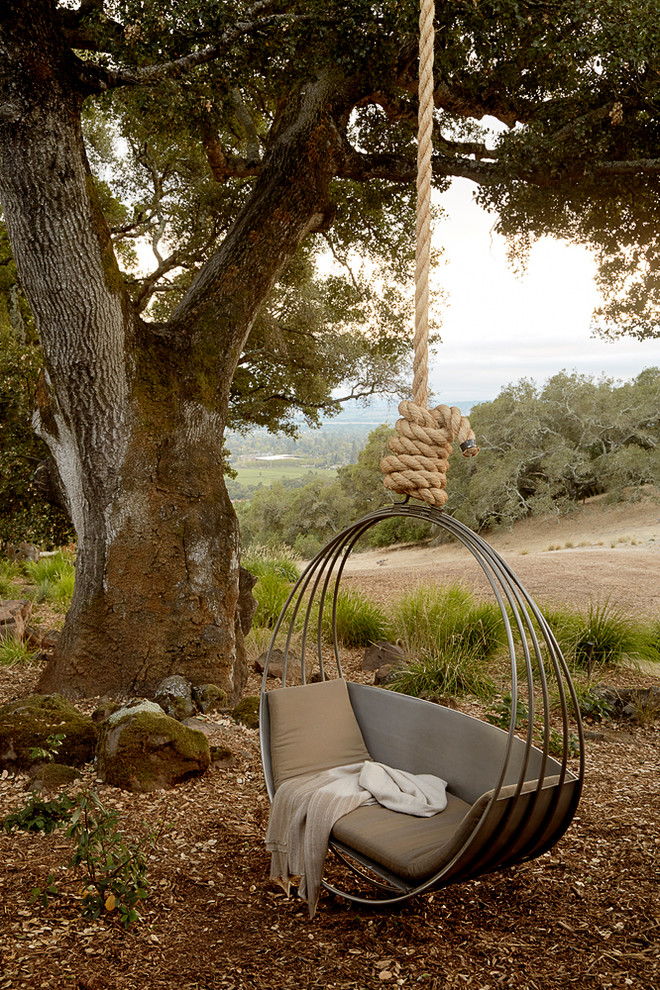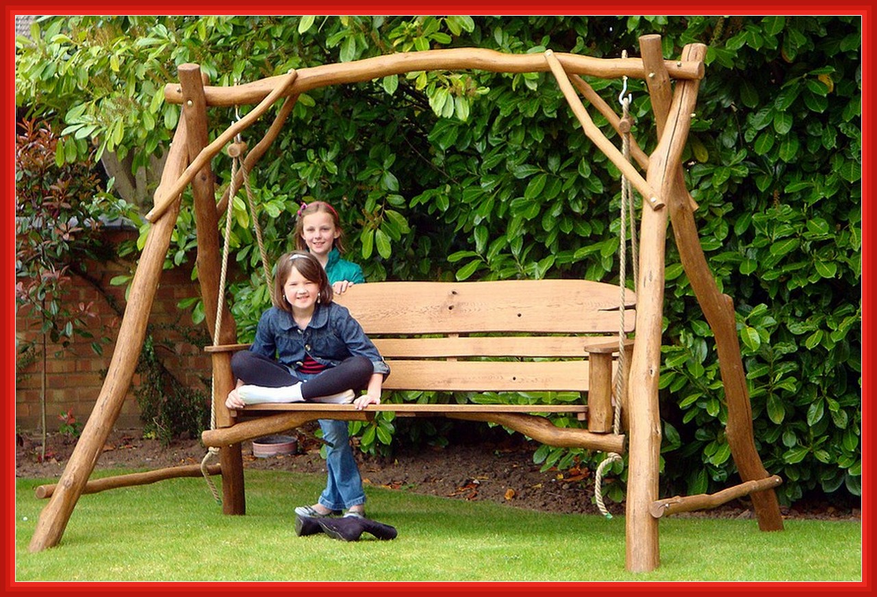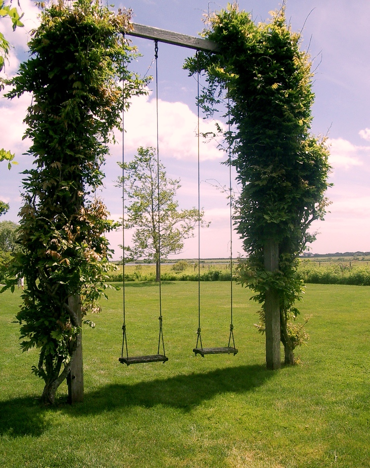 - Schaukelt von einem Baum. Fast jede Art von Schaukel kann aus Holz hergestellt werden: Rahmen, Pendel oder Pendelleuchte. Der Vorteil dieses Typs ist die Verfügbarkeit von Materialien.In der Regel wird es auf dem Land oder in einem Landhaus immer ein paar Bretter geben, um das einfachste Design zu schaffen. Zu den Nachteilen gehört die Anfälligkeit des Baumes für die Zerstörung, solche Ausschläge für den Winter sollten entfernt werden oder, wenn sie stillstehen, mit einem Film bedeckt werden, der sie vor Feuchtigkeit schützt.