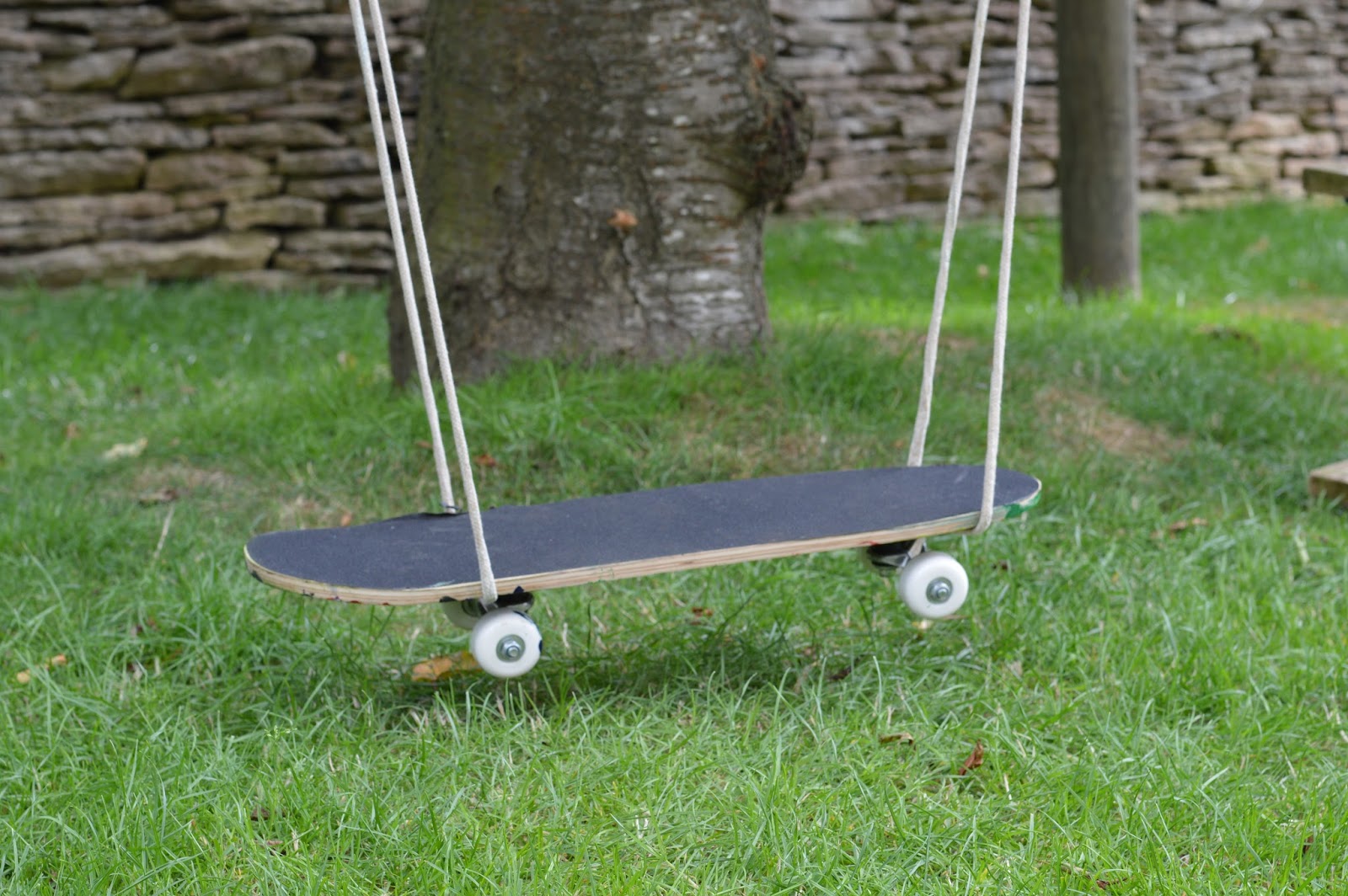 Skate ist eine ausgezeichnete Option, um auf einer Schaukel zu sitzen, nur ist es empfehlenswert, es mit etwas Weichem einzupacken, weil die Schmirgelbrettoberfläche.