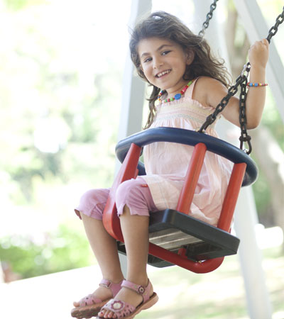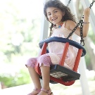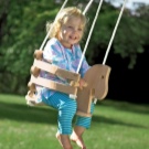 Ein Sitz für Kinder von 3-6 Jahren muss mit Armlehnen und einer Fußstütze ausgestattet sein, um es ihnen zu erleichtern, auf den schwingenden Sitz zu klettern.