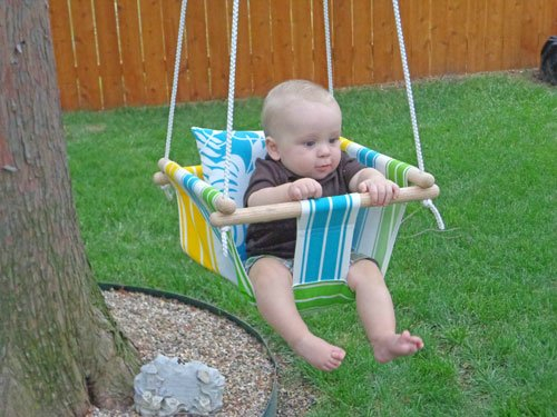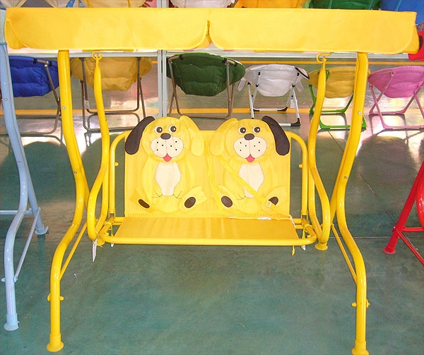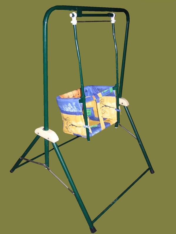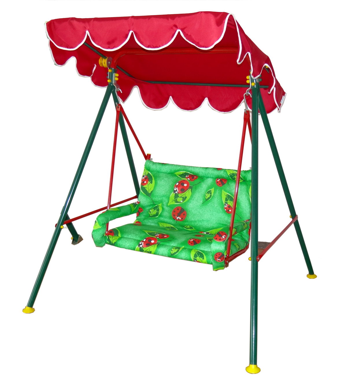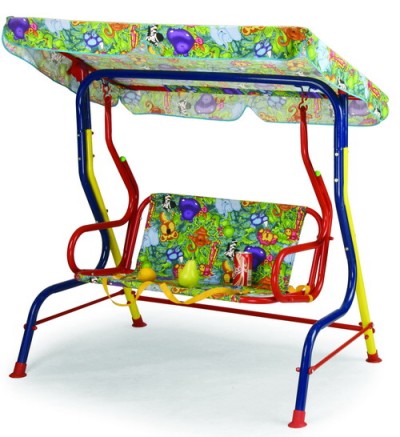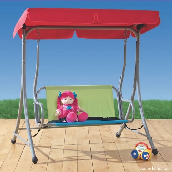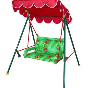 Eine separate Nische von Herstellern besetzt Kindergartenschaukeln. Sie sind kleiner und in hellen Farben gemalt. Oft sind sie mit einem zusätzlichen Schlauch im Bauchraum ausgestattet, der nach dem Sitzen des Kindes auf dem Sofa fällt. Sie ist ein Analogon der Sicherheitsgurte.
