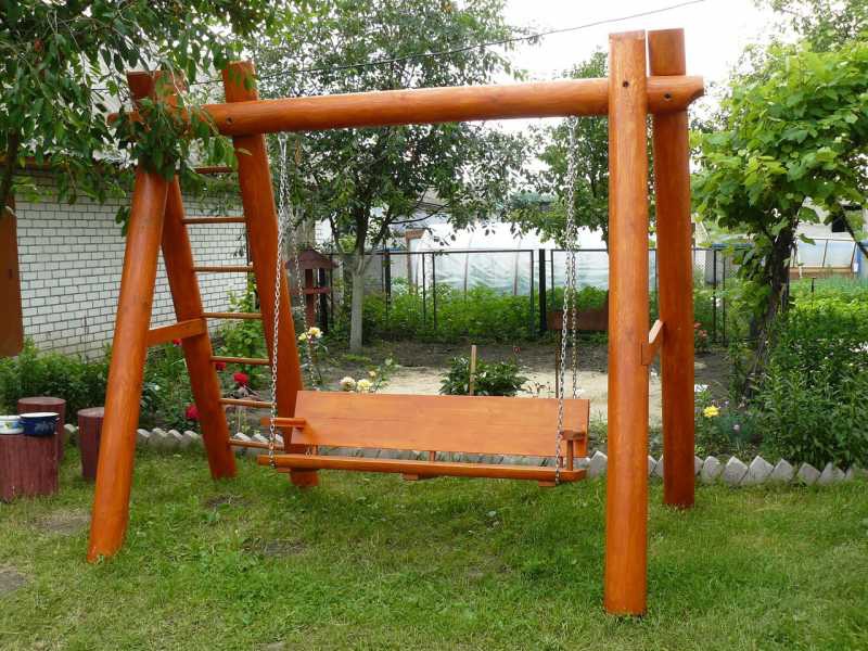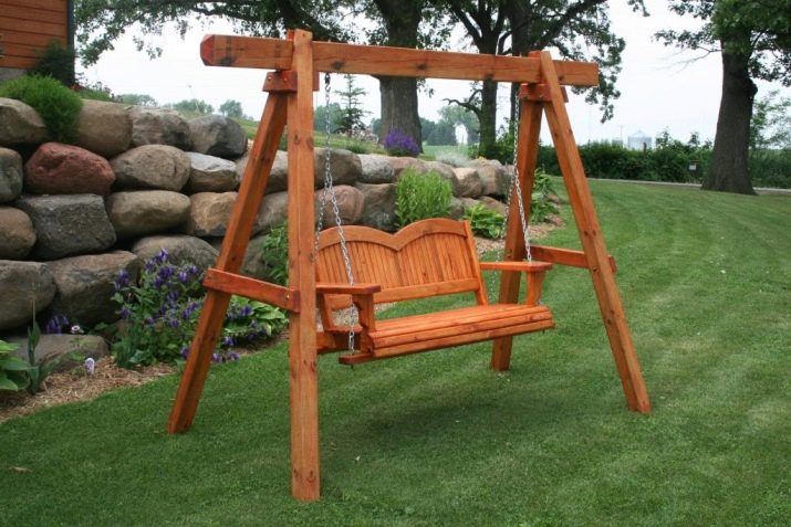 Wenn Sie eine Schaukel mit einem Holzrahmen kaufen, vergessen Sie nicht, sich um sie zu kümmern. Zu Beginn und am Ende jeder Jahreszeit müssen sie mit einer Lösung gegen den Pilz behandelt und dann mit Öl oder Lack überzogen werden. Dies wird dem Baum eine gute Resistenz gegenüber widrigen Umweltbedingungen verleihen.