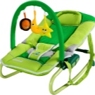 Als interessante und notwendige Funktionen sind die Modi von Vibration und Reisekrankheit zu nennen. Wenn gewünscht, können Sie Ihrem Baby melodische Musik hinzufügen, und helle Spielzeuge auf einer speziellen Halterung werden die Aufmerksamkeit Ihres Babys auf sich ziehen. Alle Lounges dieser Art sind aus sicheren und zuverlässigen Materialien hergestellt.