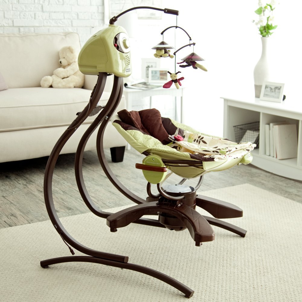 - Bewegung Krankheitsfunktion Mit Hilfe eines Schaukelstuhls können Sie das ungezogene Kind nicht nur beruhigen, sondern auch auf das Bett vorbereiten. Sie sollten sich keine Sorgen um das Kind machen, wenn es ruhig in einem Liegestuhl schläft, da das Babygerät nach allen Standards hergestellt ist und feste, feste Sicherheitsgurte hat.