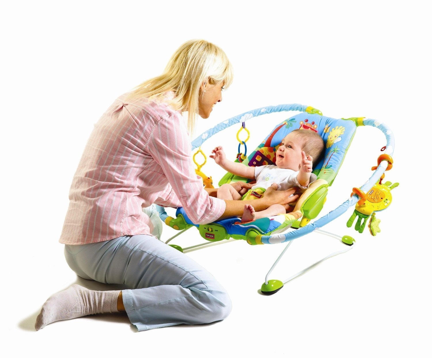 Eines der beliebtesten Modelle, wegen seiner Funktionalität und niedrigen Preise. In diesem Design kann das Baby so gut wie nötig in guter Stimmung sein, und die Vibration und die melodische Musik helfen dem Baby, sich zu beruhigen oder einzuschlafen. Mama kann nur das Baby sichern und den Knopf drücken. Dieses Modell ermöglicht das Wiegen eines Kindes mit einem Gewicht von bis zu 9 kg.