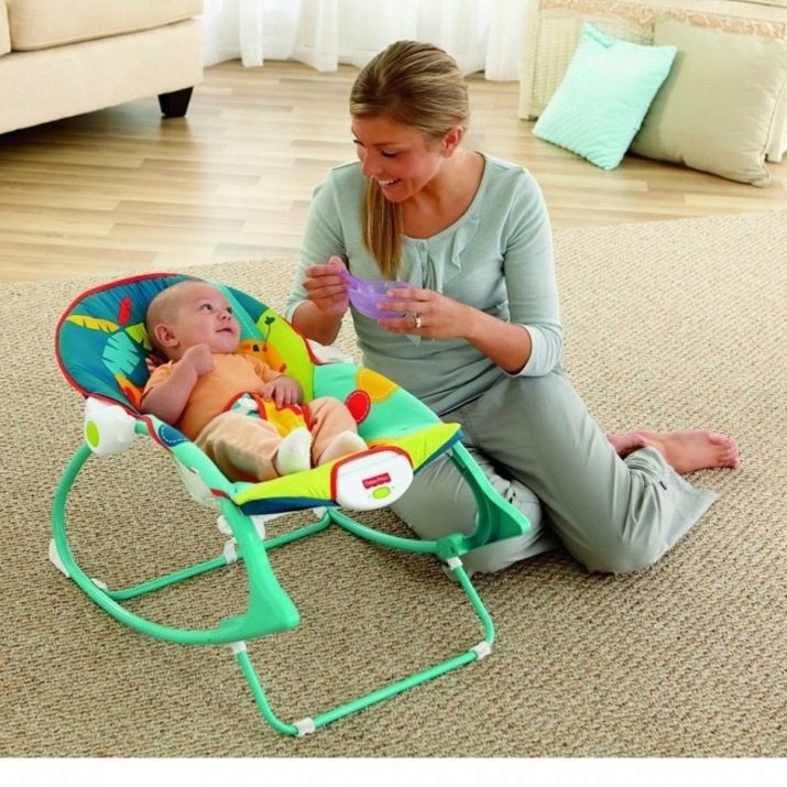 - Funktionshocker für die Fütterung. Einige Modelle von Schaukelstühlen verwandeln sich leicht in einen zuverlässigen Stuhl, in dem das Baby sicher befestigt ist.