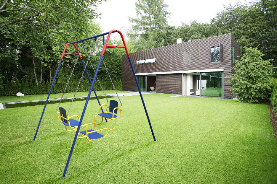 Um eine kleine Schaukel im Freien zu installieren, reicht es, einen Platz in der Nähe des Hauses zu räumen. Swing kann je nach Schwere und Komplexität des Designs den gesamten Platz auf dem Rasen einnehmen. Installieren Sie die Schaukel nicht auf dem Bürgersteig.