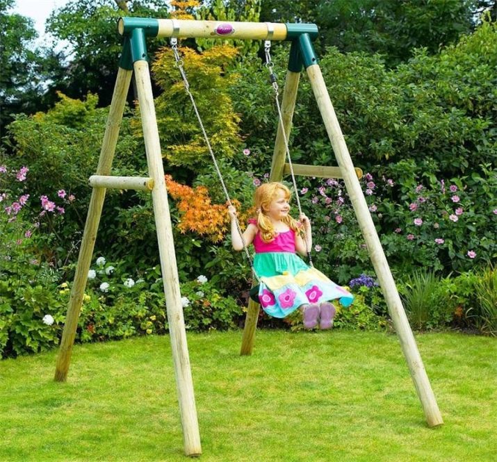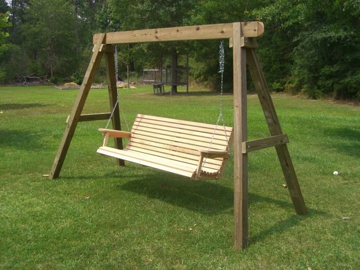 Völlig hölzerne Schaukeln werden in Form von verschobenen Strukturen dargestellt. Sie können auf dem Hof, in der Hütte installiert werden. Holz wird als das umweltfreundlichste Material verwendet und ist für jede Behandlung geeignet. Viele Eltern mögen das Aussehen des Baumes. Die einfachste Holzschaukel kann unabhängig gebaut werden. Obwohl Holz ist möglich, eine Vielzahl von Optionen für das Schwingen im Land zu bauen.