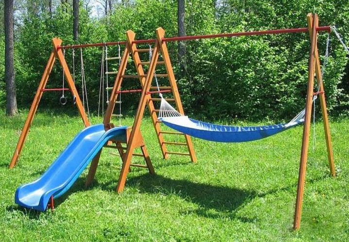 Geräte, die auf Spielplätzen zum Einsatz kommen, werden in der Regel aus natürlichen Materialien oder aus legierungssicheren Legierungen hergestellt. Um einen fertigen Outdoorschaukel zu erstellen wird verwendet: