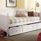 Dies ist die klassische Version eines Bettes für ein Mädchen von 10 Jahren. Seine Länge beträgt bis zu 180 Zentimeter, was bedeutet, dass Möbel "für Wachstum" verwendet werden können. Das Einzelbett passt perfekt in jedes Interieur. Und selbst im kleinsten Raum, dessen Größe 12 Meter nicht überschreitet, wird sie einen Platz finden.