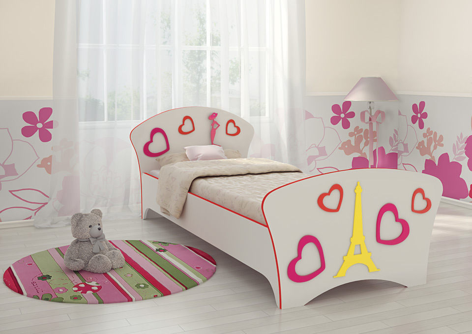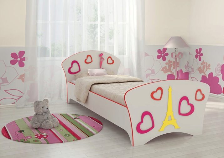 Der Stil dieses Bettes ist sehr konservativ - die Holzstruktur an den Beinen ist mit Rücken versehen, manchmal sind Zeichnungen, Ausschnitte, Applikationen darauf zu sehen. Aber es kann mit einer hellen bunten Bettdecke, Stofftiere, in einer Reihe sitzen dekoriert werden. Einzelbetten sind meist sehr stark und halten einem Gewicht von bis zu 100 Kilogramm stand.