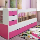 Besitzer der gleichen einfachen Wiegen am Vorabend des zweijährigen Bestehens des Babys werden höchstwahrscheinlich ein größeres Kinderbett in das Zimmer stellen müssen.Es ist anders als diejenigen, die bereits keine Zäune haben, aber es ist eher niedrig - das Kind kann darin liegen und aufstehen, sitzen und spielen während des Tages. Die Größe des Bettes erhöht sich - Länge ist von 130 bis 170 cm, Breite - 70 cm Für ein Kind ab 4 Jahren (oder ein Kind jeden Alters, das viel dreht und schläft und gerne daliegt), sollten Sie sofort ein breites Bett von 80 cm nehmen.