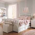 Sehr mädchenhaft sanft, aber ohne Prunk, wird das Bett im Stil der "Provence" aussehen. Es stimmt, dass es in das entsprechende Interieur passen muss. Es kann durch Abholung eines einfachen hellen Holzmöbel erstellt werden. Der Stil ist gut geeignet Krippen an den Beinen und mit Fräsen auf der Abbildung Kopfteil. Textilien - in einer kleinen Blume. In solch einem Innenraum stören eine Stehlampe und eine Vase oder ein Korb von Blumen nicht.