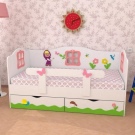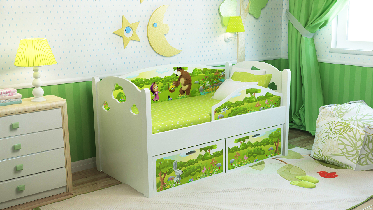 Wenn Sie sich entscheiden, ein klassisches Bett zu kaufen, aber Sie möchten, dass es interessant ist, schauen Sie sich das Design an. Hersteller bieten Kinderbetten mit Bildern. Die Möbel Ihres Kindes können mit Disney Prinzessinnen, Peppa, WinX, Teddy Bear, Mascha und Bear dekoriert werden. Kleine Familienmöbelhersteller sind mit dem Design der Helden der sowjetischen Cartoons - Winnie the Pooh, Hare und Wolf von "Na, warte mal!", Etc. zufrieden.