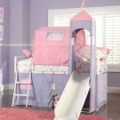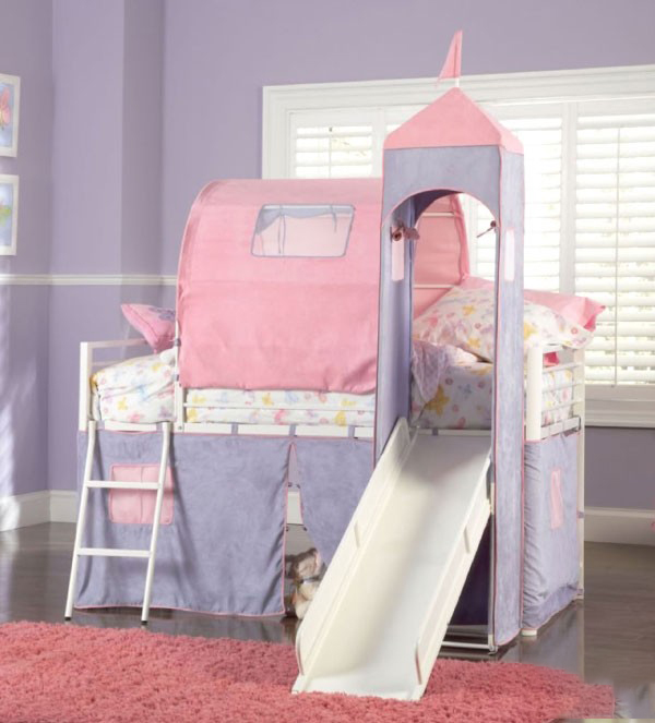 - Völlig "tauber" Schloss draußen mit einem Bett auf der oberen Reihe. Zu Bett muss man die Treppe hinaufgehen. Die Idee wird jedes romantisch gesinnte Mädchen ansprechen, weil sie märchenhafte Szenen über Prinzessinnen in hohen Türmen spielt.