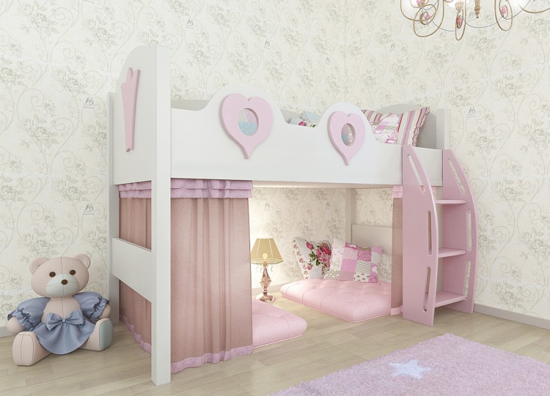 Solche Möbelmodelle sind thematisch und funktional für Mädchen ab 6 Jahren und jünger geeignet, wenn Kinder noch aktiv spielen. Der Raum der "Burg" selbst ist auch nicht leer - er befindet sich normalerweise im Speichersystem oder kann als Haus für Spiele genutzt werden.