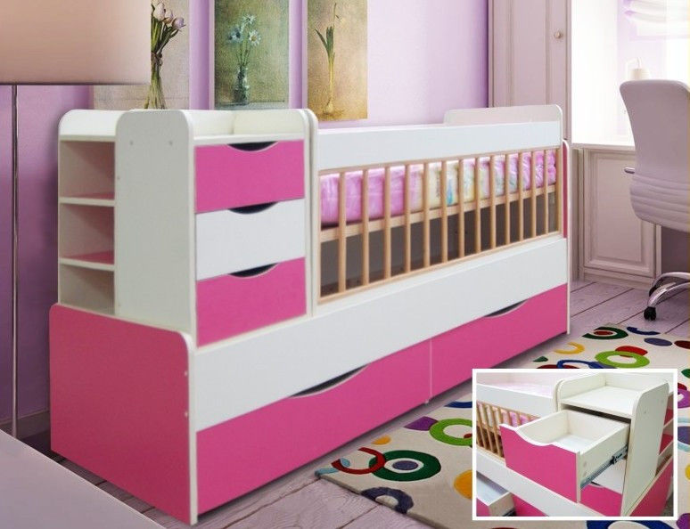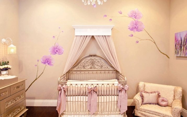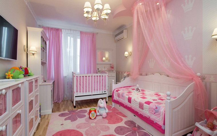 Eltern eines kleinen Mädchens wollen natürlich, dass ihr Zimmer hell und schön dekoriert ist. Für Neugeborene wählen sie normalerweise eine weiße oder rosa Krippe. Auch für Mädchen hängen Mütter oft Vordächer. Es kann an die Farbe der weichen Seiten angepasst werden. Die Hauptfarben für Mädchenzimmer sind weiß, beige, zart oder pink, hellgrün, gelb und lila.