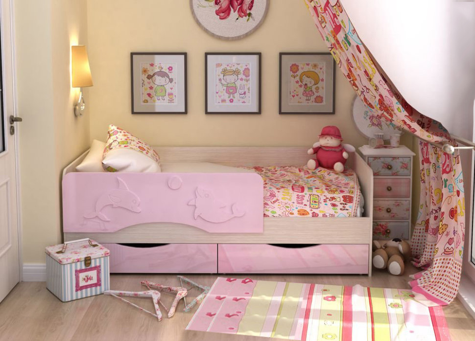 Bei älteren Kindern ist es wichtig, auf die Seite zu achten. Jedes Kind in einem Traum kann sich ausbreiten und fallen. Um dies zu verhindern, sollte das Bett auf der Seite, die die Wand (oder auf beiden Seiten) nicht berührt, eine Leiste haben.Es gibt Modelle, bei denen diese Seite ein Designelement ist (zum Beispiel das sehr beliebte Dolphin Cot). Darüber hinaus kann die Seite separat gekauft und an jedes Kinderbett geschraubt werden (diese Option ist in den IKEA-Katalogen).