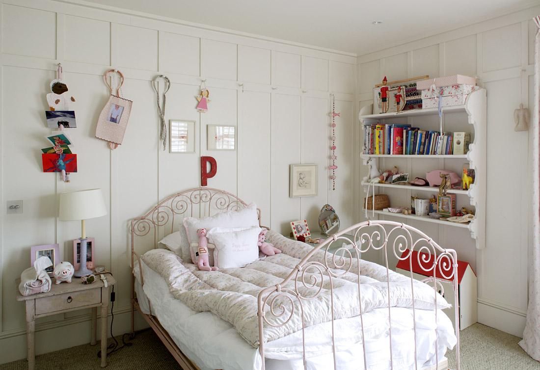 Wenn Sie keinen Baldachin verwenden möchten, wird der Stil des "Prinzessinzimmers" durch ein geschnitztes Bett gut unterstützt.