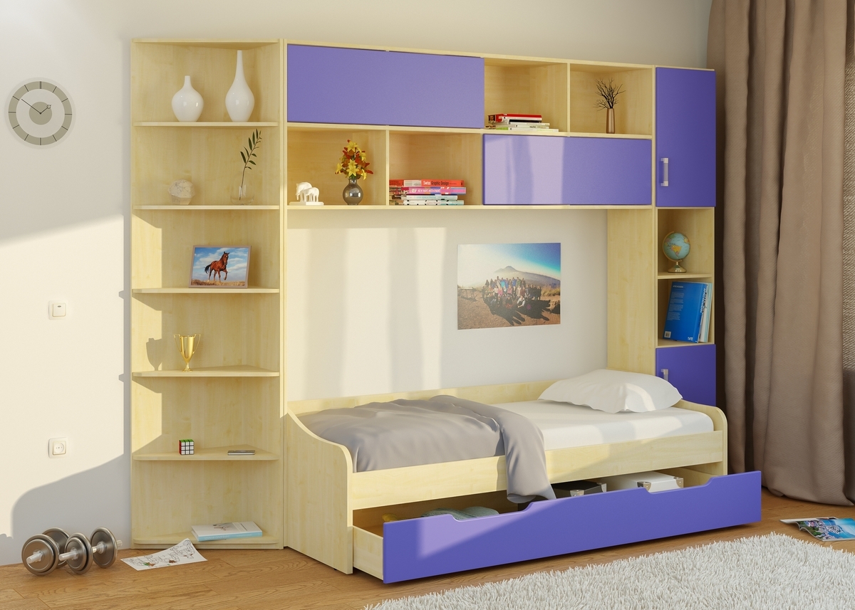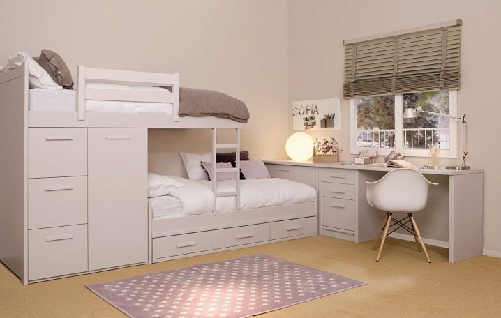 Für Kinder im mittleren und höheren Schulalter wird das Bett als Spielfläche irrelevant. Sie brauchen Möbel für "geschäftliche" Zwecke - mit einem Platz zum Lernen, Bücher, Sportgeräte usw.