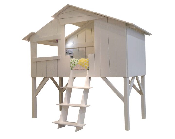 Sehr originelle moderne Betten - "Häuser". Sie sind aus einfachem, glattem Holz, ohne Nachbearbeitung, aber mit guter Politur. Diese Häuser dienen nicht nur zum Schlafen, sondern auch zum Spielen. Sie können ein solches Bett so dekorieren, wie Sie möchten - vom Touristenzelt bis zum Wigwam. Cot-Cottage ist gemütlich und schafft ein besonderes Gefühl der Sicherheit.Es sollte jedoch bedacht werden, dass sich ihr Bett direkt auf dem Boden befindet: Es sollte keine Zugluft in der Wohnung geben.