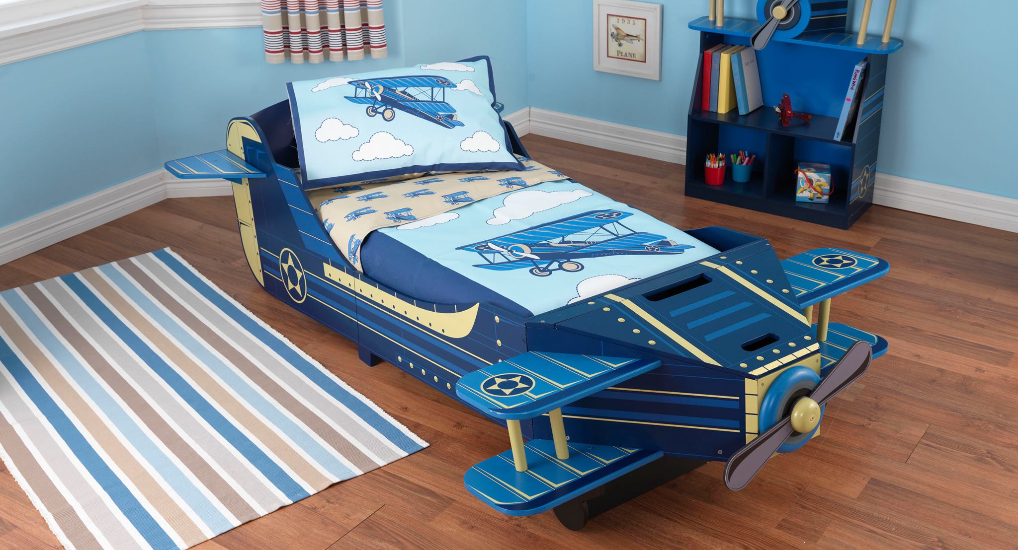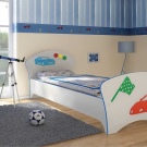 Sehr schönes Modell mit jungenhaftem Design. Für ein solches Bett gibt es zwei Möglichkeiten: ein realistisches Bett, das wie ein echtes Flugzeug gebaut ist, und ein normales Bett mit Seiten in Form eines Passagierflugzeugs.