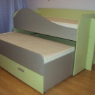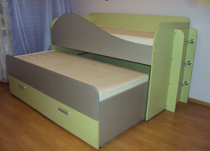 Für die jüngsten Kinder ist das Hauptmaterial der Herstellung natürliches Holz, da es das sicherste und gleichzeitig teuerste ist. Für ältere Kinder sind Betten aus Kunststoff, Spanplatten oder Metall.