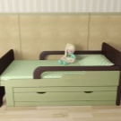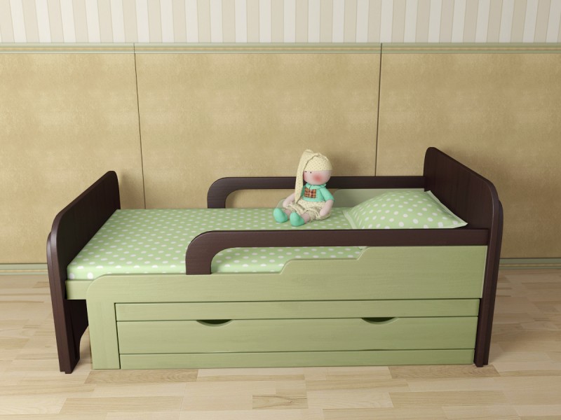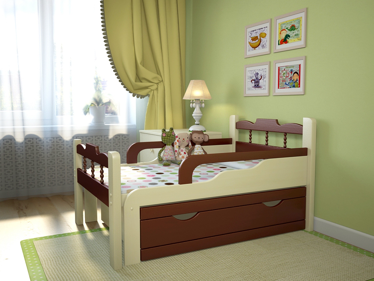 Ein Schlafplatz, unabhängig von der Gestaltung des Bettes, sollte so sicher wie möglich sein. Seit 2 Jahren lohnt es sich, Betten aus qualitativ hochwertigem Naturholz mit abgerundeten Ecken zu wählen oder mit speziellen Kunststoff- oder weichen Textildüsen zu versehen.