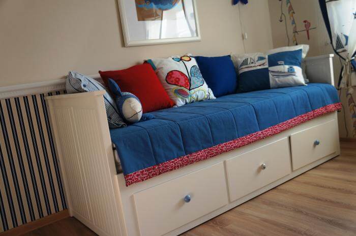 Beim Kauf eines Bettes in einem Zimmer für einen Jungen sollte eine Liste der Anforderungen berücksichtigen.