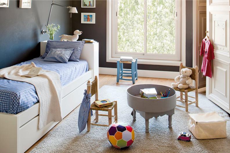 - Sichere Möbel: mit abgerundeten Ecken, niedriges Bett, Tisch, Regale, Stühle, entsprechend dem Wachstum des Kindes.