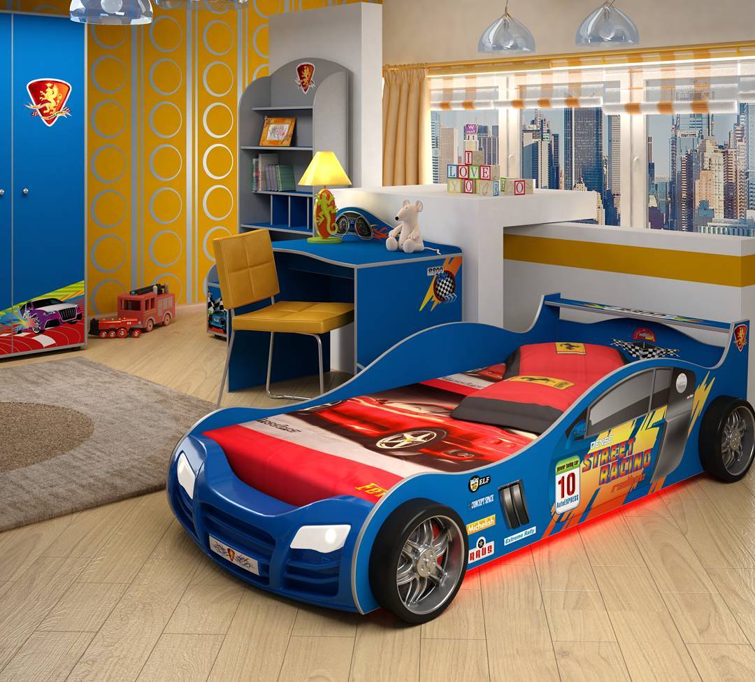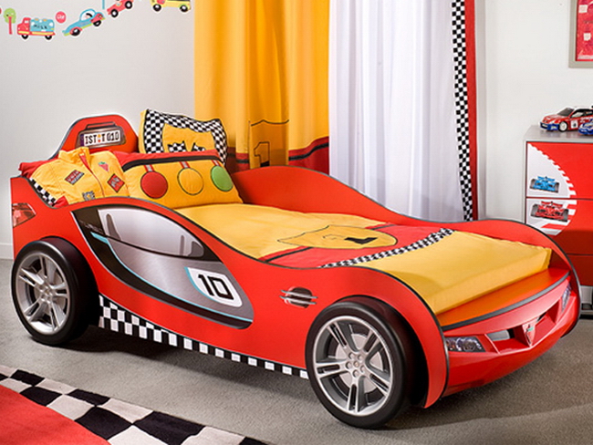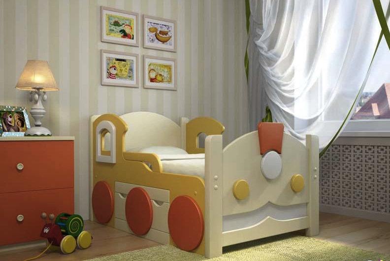 Seit ihrer Kindheit lieben Jungen Autos und Rennen. Daher ist es nicht verwunderlich, dass fast alle Jungen ein Bett haben wollen, das wie ein Auto aus einem Comic-Auto aussieht. Dieses Modell ist sehr komfortabel und schön und passt in jedes Interieur des Kinderzimmers.