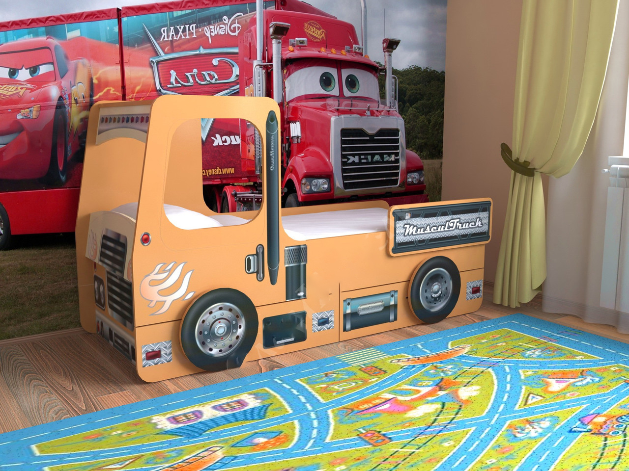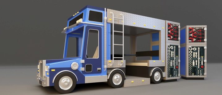 Ein unrealistisch realistisches Modell eines Lastwagens wird absolut jeden Jungen ansprechen. Dieses Bett kombiniert eine Vielzahl von Funktionen. Auf einem solchen Bett können Sie schlafen, spielen und Ihre Sachen und Spielsachen aufbewahren. Es hat große Abmessungen, aber in seiner Funktionalität ersetzt es alle Arten von Kindermöbeln.