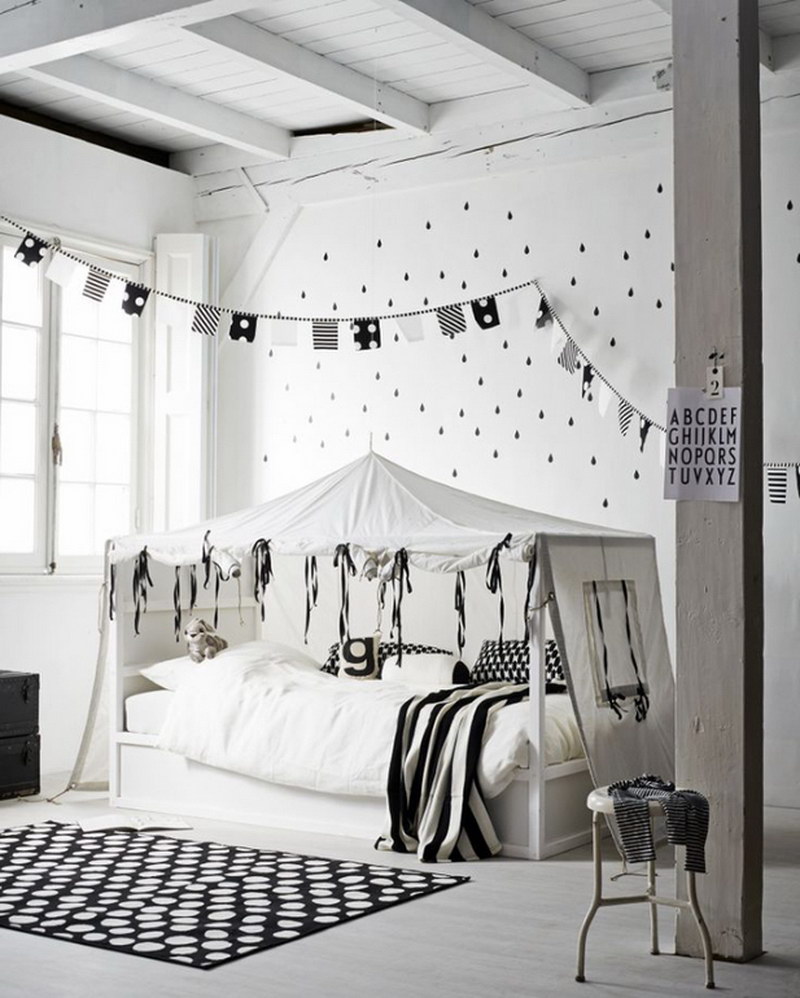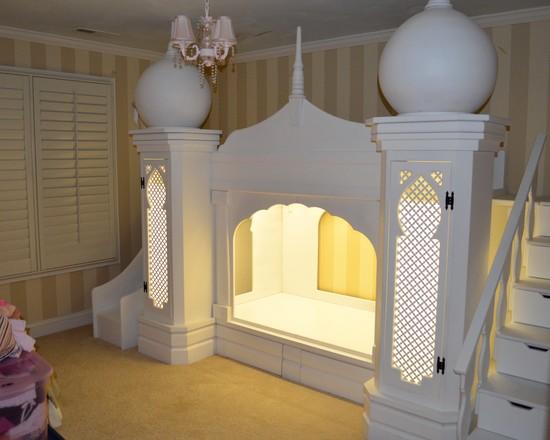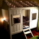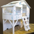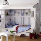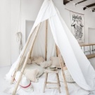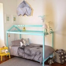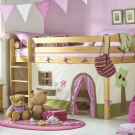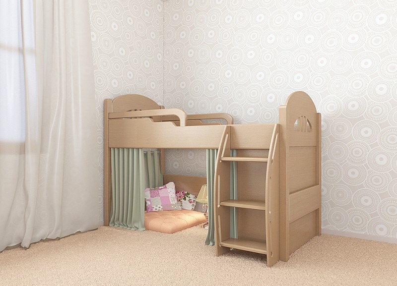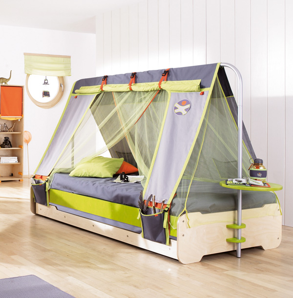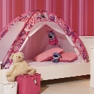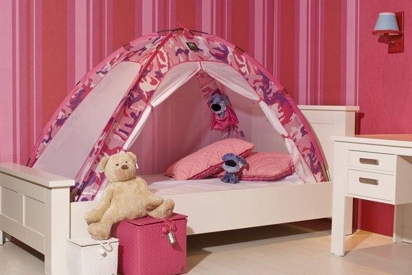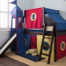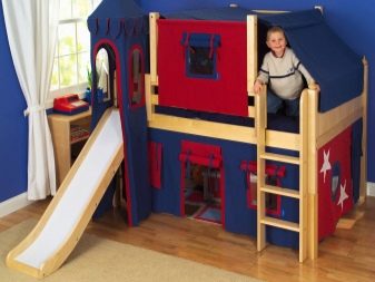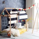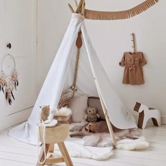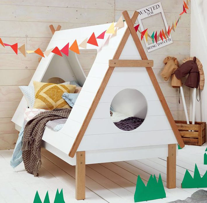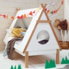 Die kleinsten Kinder im Alter von 2-3 Jahren, sowie diejenigen, die Höhenangst haben, die unruhig schlafen und fallen können, oder die, die von fernen Ländern träumen, Wanderungen und archäologische Expeditionen, werden zu der Schlafhütte passen. Es ist übrigens leicht als ein indisches Tipi und ein Reiserzelt zu interpretieren.Und wenn Sie die Vorhänge der Bett-Hütte im orientalischen Stil schmücken, wird es leicht zu einem Zelt des Sultans oder der Kammer der Königin von Shamakhani.