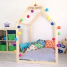 Nicht umsonst sind hölzerne Kinderbetten in Form eines Hauses meist die teuersten. Aber sehen Sie, die lebendige Energie eines echten Baumes, die Ihr Kind jeden Tag mit einem positiven auflädt, ist es wert. Eine bescheidenere Option ist ein Bett mit einem Haus aus Holz und Sperrholz, das normalerweise verwendet wird, um Dächer, Wände und verschiedene montierte Strukturen (Zäune, Fensterläden und Türen) zu machen. Und die billigsten Betten werden Plastik- oder Spanplattenhäuser sein, aber ihre hypoallergene und Qualität sollte besonders sorgfältig überprüft werden.