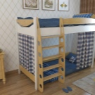 Die beste Option ist zweifellos ein Holzhaus: Es ist schön, langlebig und praktisch. Es ist auch umweltfreundlich - wenn natürliche Holzwachse zum Veredeln von Holzoberflächen oder ungiftigen Farben auf Wasserbasis verwendet werden (was normalerweise im Produktqualitätszertifikat angegeben ist). Die Zuverlässigkeit eines solchen Schlafhauses bietet eine hohe Dichte der Holzstruktur seiner Strukturen, zusätzlich verstärkt mit Metallstäben, die im Inneren eingefügt sind. Dadurch kann jeder Schlafplatz für Kinder hohen Belastungen standhalten - bis zu 120 kg. Befestigungsmittel für Holzhäuser werden in der Regel aus hochfestem Stahl gefertigt und sorgfältig vernietet. Es gibt aber auch Modelle mit schmiedeeisernen Beschlägen - wenn das Design es erfordert.