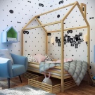 Ein Kinderbett mit einem Haus ist nicht nur eine kreative Innenlösung.Für ein Kind ist eine Schlafstätte eine komplexe mehrgeschossige Konstruktion, auf der er nicht nur schlafen, sondern auch viel bewegen und aktiv werden kann. Daher muss das Bett in Form eines Hauses sicher und geschützt sein. Und das bedeutet, dass die Eltern bei ihrer Wahl im Laden, und noch mehr bei Self-Made, dem Sprichwort "hundertmal messen" folgen sollten. Zuallererst sollten Sie auf die Materialien achten, die das Bett mit einem Haus für Ihr Kind bilden.