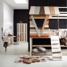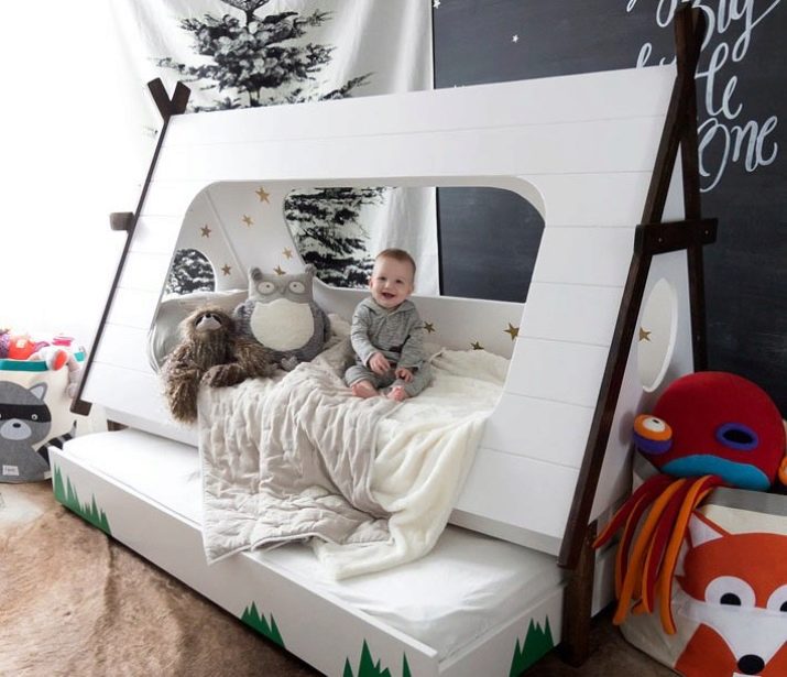 Auf dem russischen Markt bieten Innenarchitekten und Möbelhersteller Kinderbetten, Häuser in verschiedenen Formen, Farben und thematische Modifikationen von umweltfreundlichen hypoallergenen Materialien an - Holz, seine verschiedenen Arten von Massivholz oder dauerhaftes Sperrholz. Einige Modelle umfassen bequeme Kindertische und Stühle für Spiele und Aktivitäten, offene und geschlossene Lagerregale, Kommoden in ungewöhnlichen Formen und Größen, bunte Truhen und Regale. All diese Module helfen Kindern, Dinge zu systematisieren, ihren ästhetischen Geschmack aufzudecken und sie über Ordnung und Disziplin zu unterrichten.