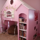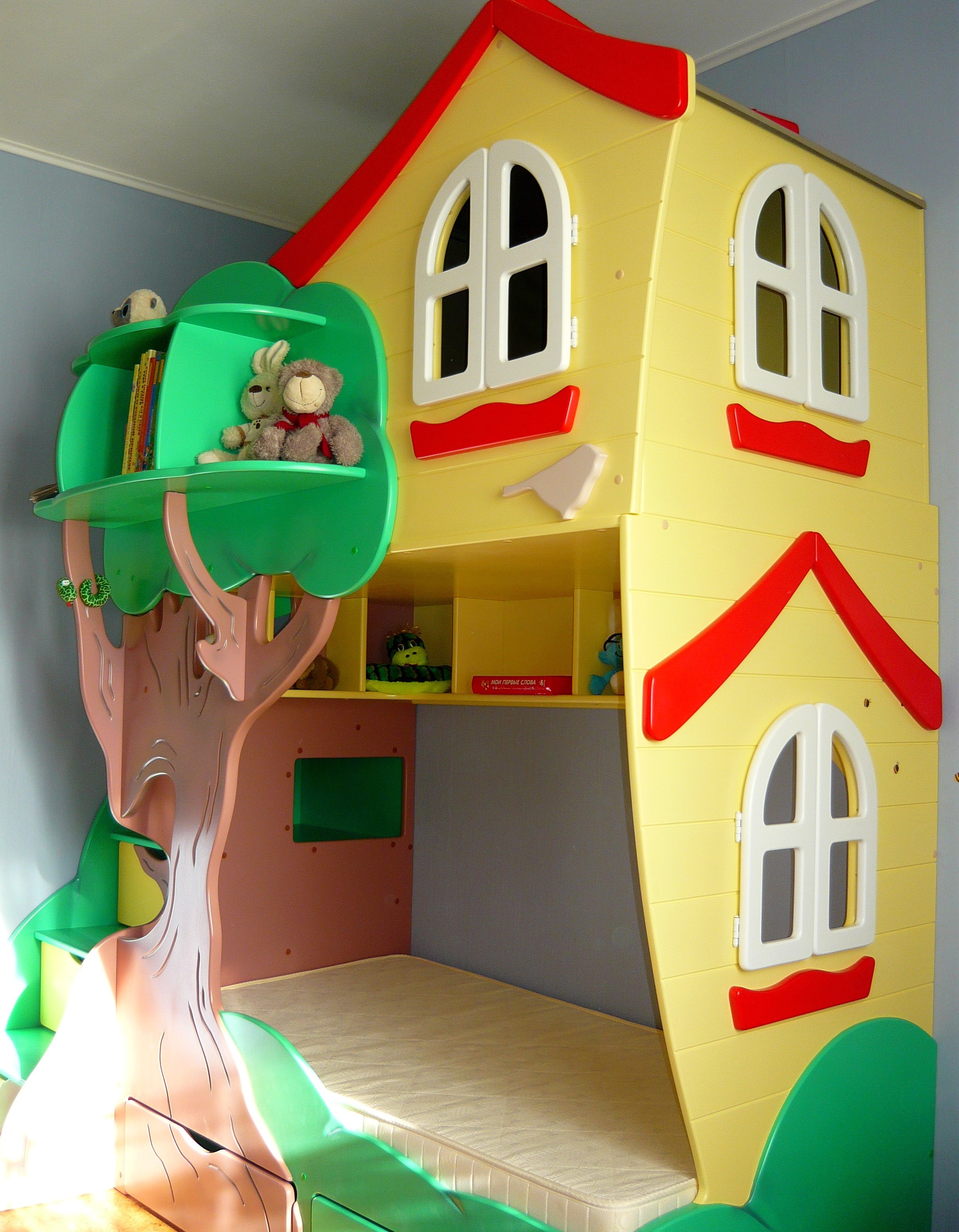 Tatsächlich sind die Cottages nicht so groß wie sie scheinen. Sie helfen sehr, Platz zu sparen und die nutzbare Fläche des Raumes deutlich zu vergrößern. Und sie schaffen auch im Kinderzimmer eine einzigartige Atmosphäre, Komfort und positive Stimmung. Im Vergleich zum üblichen Schlafplatz sind Betten mit Häusern nur in der Höhe vergrößert, und Sportgeräte und zusätzliche Spielmodule sind auf Wunsch von Käufern ausgestattet und vor allem auch sehr kompakt.