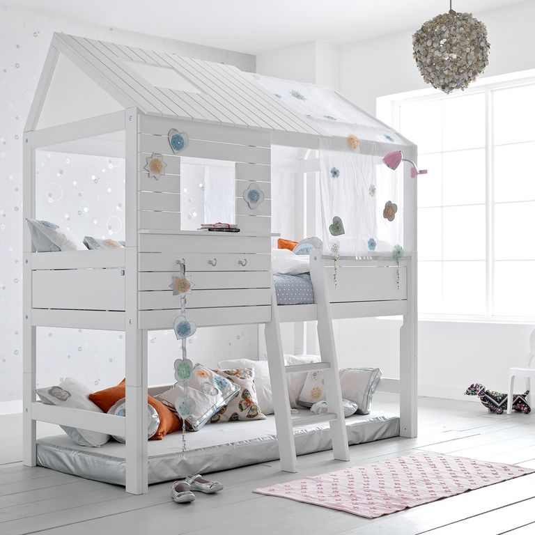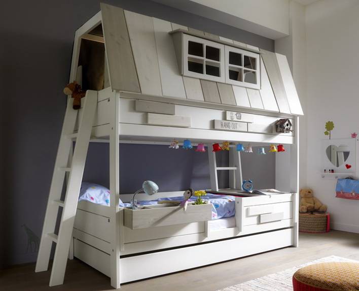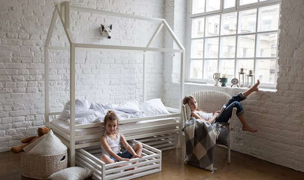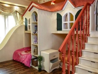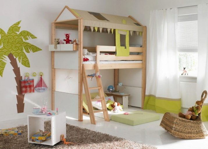 Bei der Dekoration können Mädchen und Jungen ihre kreativen Fähigkeiten und ihren Sinn für Stil zeigen. Indem sie ihre Spielzeuge und Gegenstände in geheimen Ecken oder in den offenen Regalen des Bett-Brecheisens platzieren, lernen die Kinder Ergonomie und Genauigkeit. Kinder jeden Alters klettern gerne in Form eines Hauses auf und ab, zeigen Flexibilität und Wunder der Beweglichkeit und Stärkung der Muskeln. Sie rollen den Berg hinab und erklimmen ein Seil oder eine Mini-Kletterwand und trainieren nicht nur Gleichgewicht, Orientierung im Raum und Logik, sondern auch Selbstvertrauen.Einige Erwachsene glauben jedoch fälschlicherweise, dass diese nützlichen Babybetten zu viel Platz im Kinderzimmer beanspruchen und sich daher für Standardbetten entscheiden.