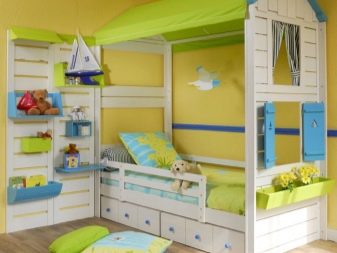Es ist einfach, ein Bett in Form eines Hauses für ein Baby zu wählen - alles, was Sie brauchen, ist seine fabelhaften oder animierten Geschmäcker und Farbvorlieben zu kennen. Aber Betten mit einem Haus für zwei oder drei Kinder zu arrangieren, besonders wenn sie unterschiedlichen Geschlechts und Alters sind, ist viel schwieriger - die meisten Eltern denken das. Und vergebens: Das Problem kann nur mit der begrenzten Raumfläche entstehen, nicht aber mit der Vielfalt an Möglichkeiten, die Designer und Hersteller von Kindermöbeln bieten.