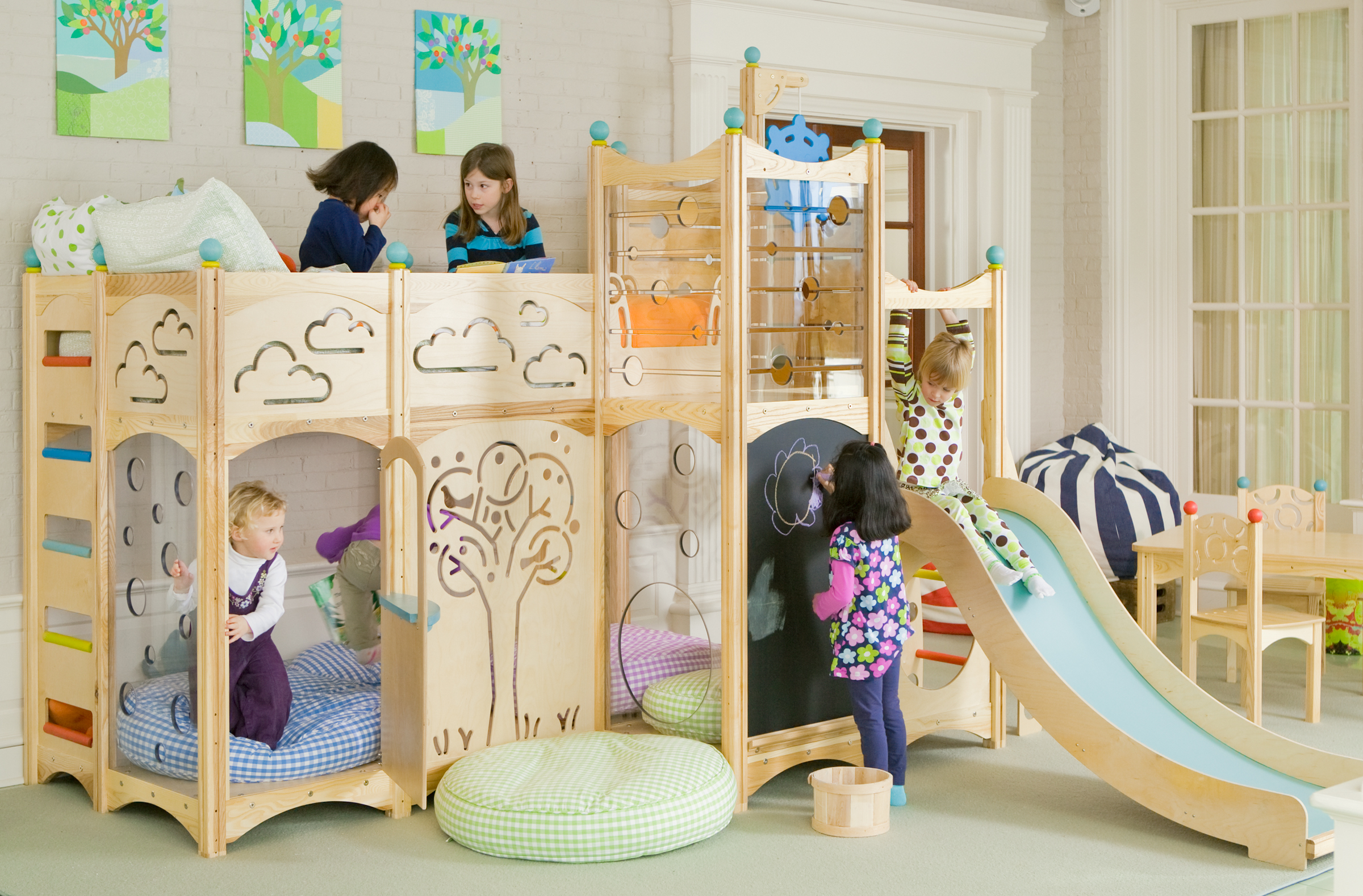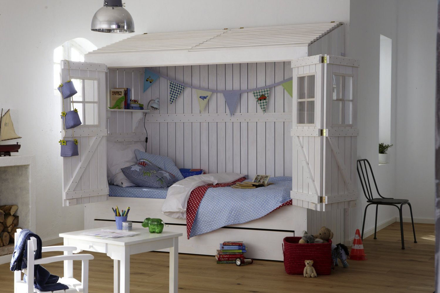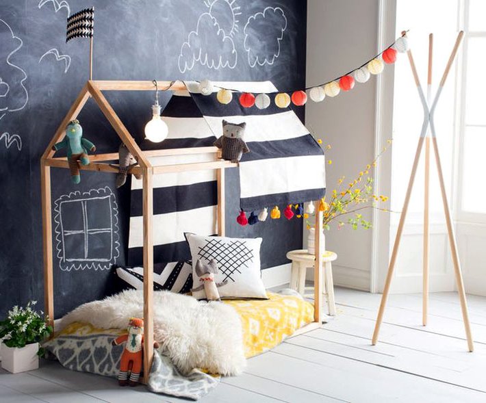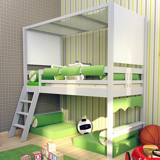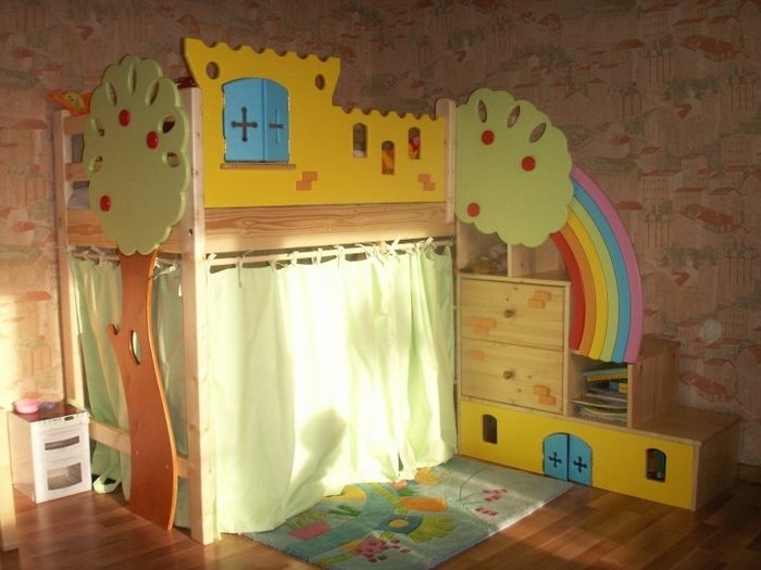 Dieses multifunktionale Design, das in einem Geschäft gekauft oder von Hand gefertigt wird, wird das Leben des Babys und seiner Freunde mit echter Magie, sportlichen Erfolgen und Bildungsabenteuern füllen. Schließlich kann das Kind dort sein eigenes Bett einrichten, um dort einen persönlichen Raum zu schaffen - eine besondere Welt der Lieblingsdinge, Spielsachen, Bücher und Phantasien, deren Eingang er regulieren wird.