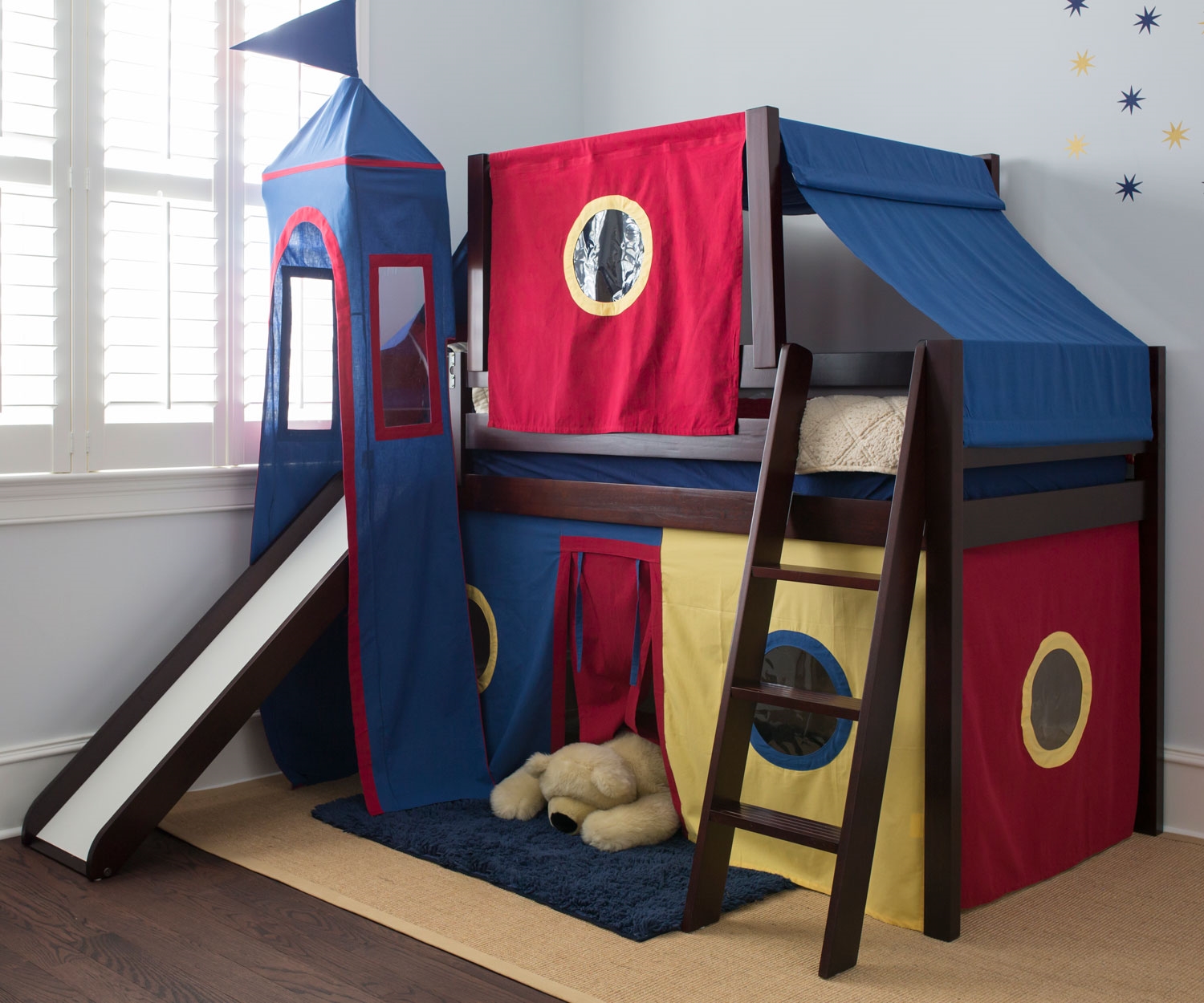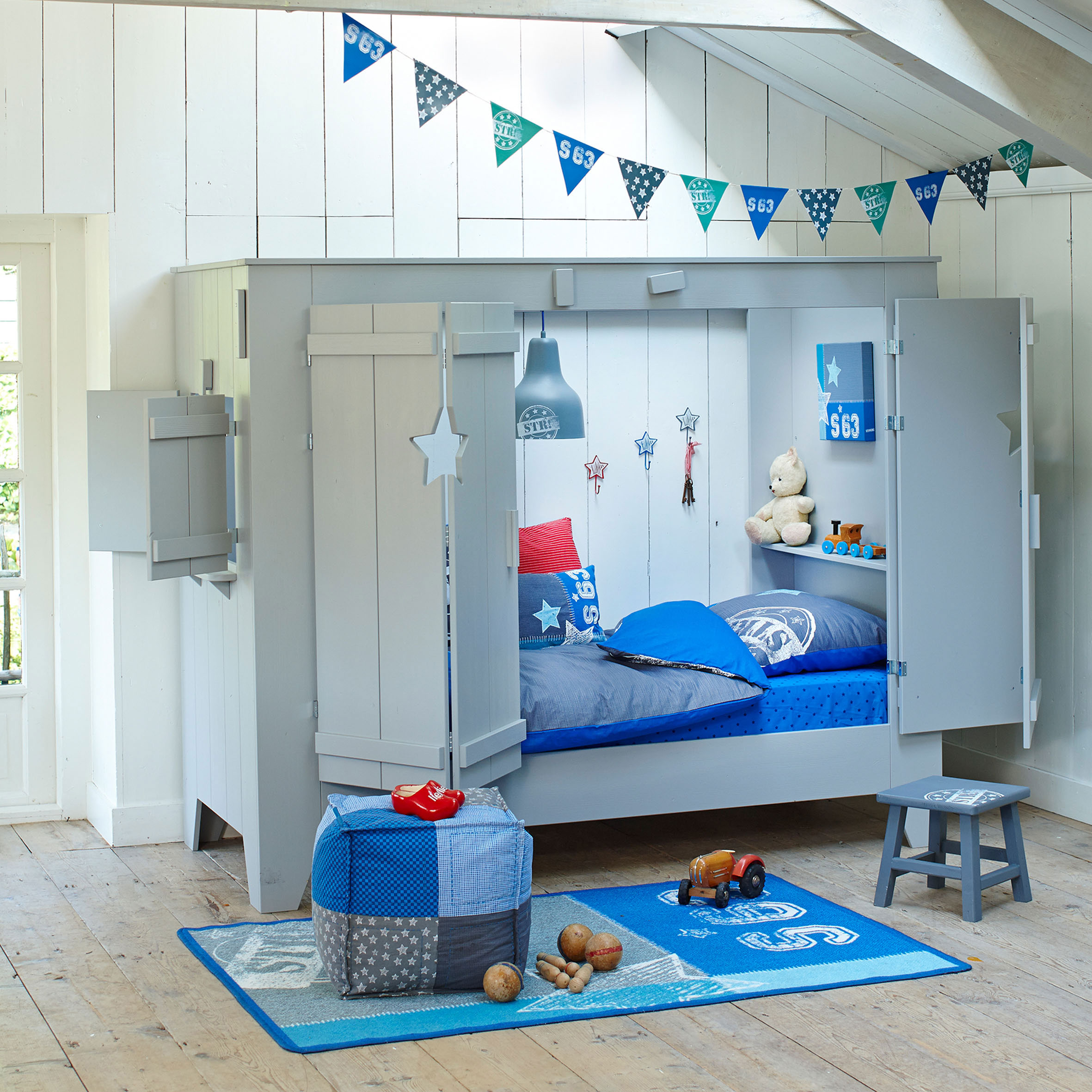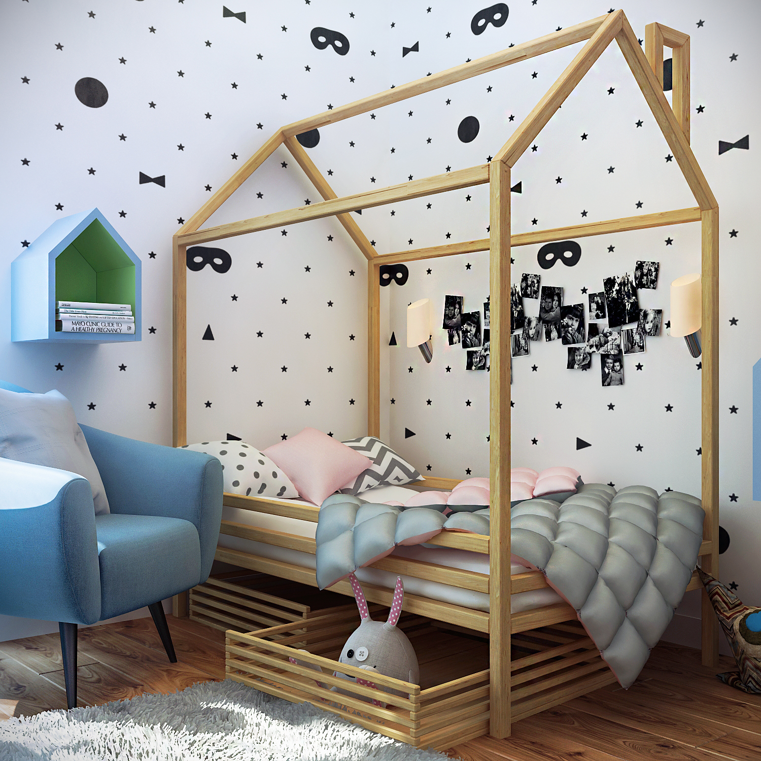 Dieses multifunktionale Design, das in einem Geschäft gekauft oder von Hand gefertigt wird, wird das Leben des Babys und seiner Freunde mit echter Magie, sportlichen Erfolgen und Bildungsabenteuern füllen. Schließlich kann das Kind dort sein eigenes Bett einrichten, um dort einen persönlichen Raum zu schaffen - eine besondere Welt der Lieblingsdinge, Spielsachen, Bücher und Phantasien, deren Eingang er regulieren wird.