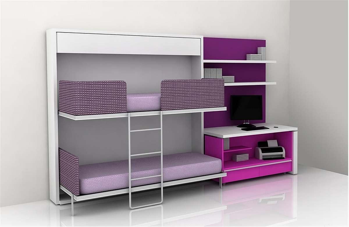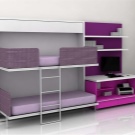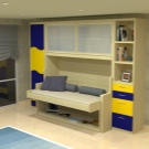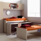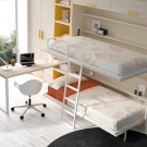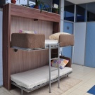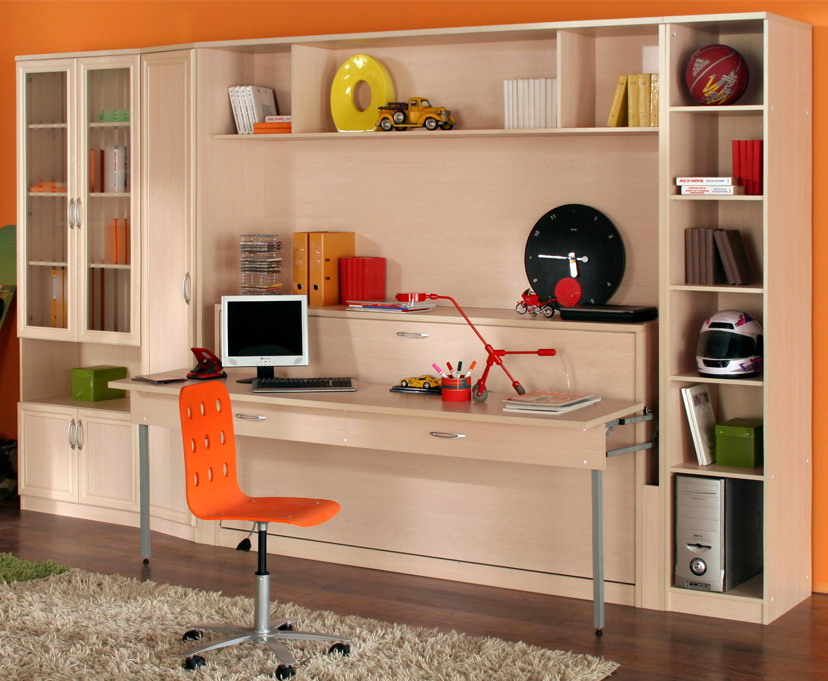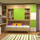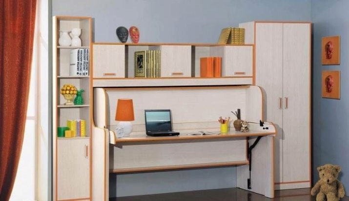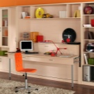 Der stationäre Teil des Designs hat in seinem Arsenal einen Schrank oder Regale auf Wunsch des Kunden. Das bewegliche Element enthält ein Bett, das in einen Schreibtisch umgewandelt werden kann.Überraschenderweise können Sie heute auf dem Schreibtisch den Monitor in einer festen Position einstellen, was den Reinigungsprozess erheblich erleichtert.