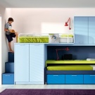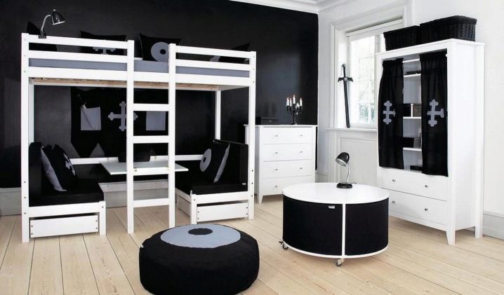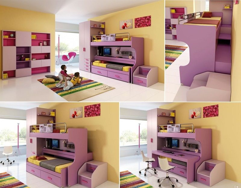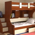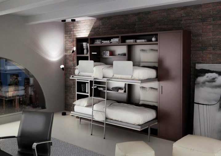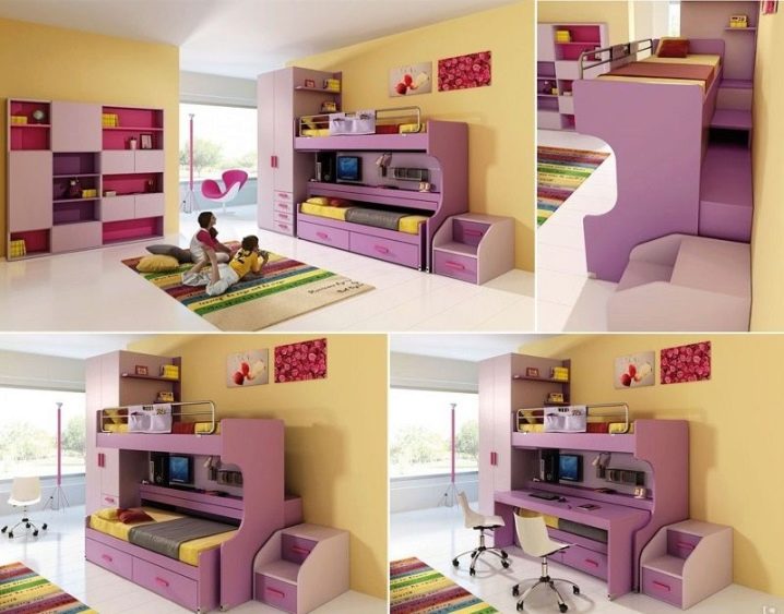 Nicht jedes Etagenbett ist für zwei Kinder ausgelegt. Es gibt Transformatoren, die vor allem auf Platzeinsparung ausgerichtet sind. Also, das "Bett + Kleiderschrank + Tisch" -Design besteht aus zwei Teilen: