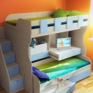 Duo-Benutzer weisen auf die Vor- und Nachteile des Designs hin, während die Profis tatsächlich viel größer sind. Das Modell muss also nicht mit der Angst von Kindern umgehen, in großer Höhe zu schlafen.Die Bequemlichkeit der Treppe mit Begrenzern an den Seiten bietet eine sichere Abfahrt auch im Halbschlafzustand. Regale unter den oberen und unteren Plätzen ermöglichen es Ihnen, die Dinge von Kindern zu teilen, indem Sie für jeden einzelnen Raum sorgen. Die Kosten für das Modell sind relativ niedrig.