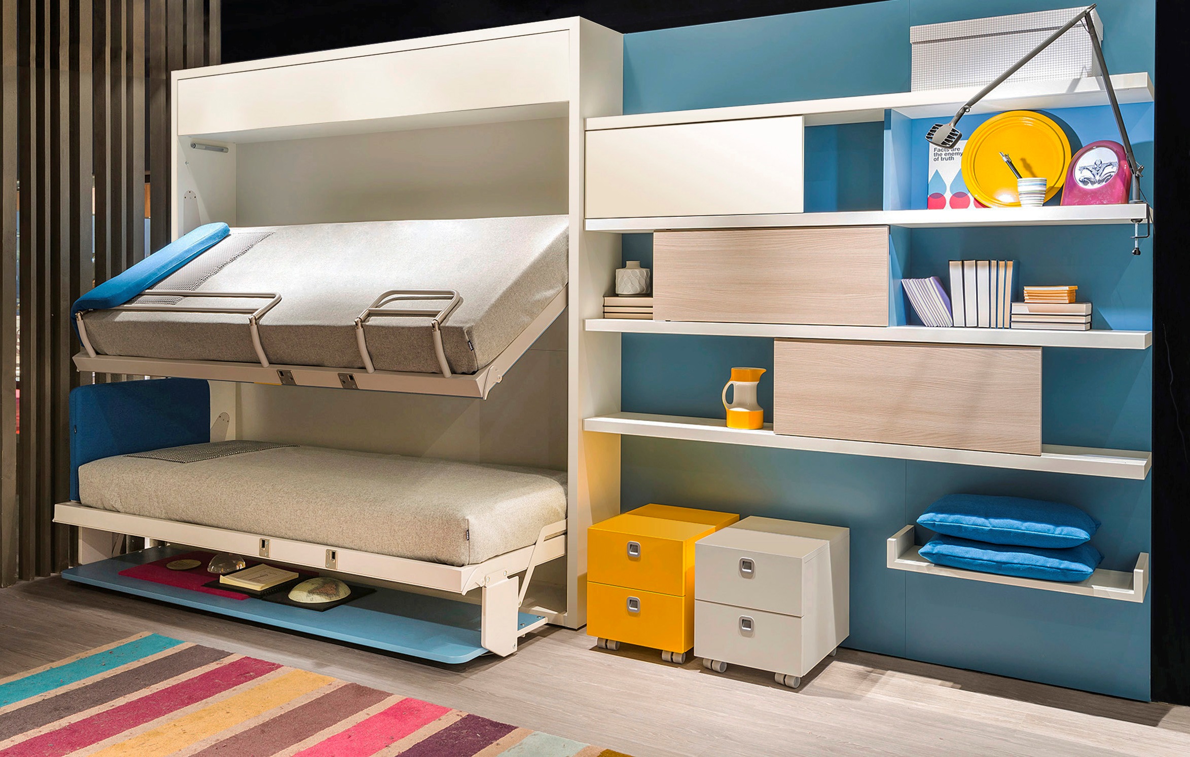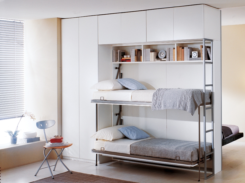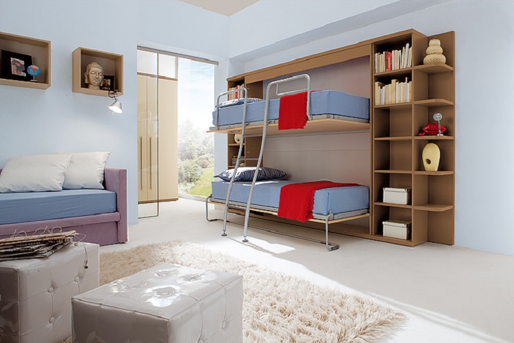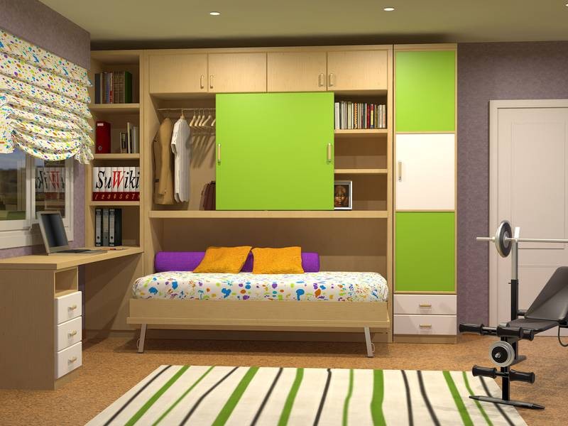 Bei einigen Zimmern und der Installation von Etagenbetten wird jedoch deutlich Platz gespart und die Mindestfläche für das Spielfeld bleibt erhalten. In solchen Fällen helfen Klappbetten oder Bett-Kleiderschrank.