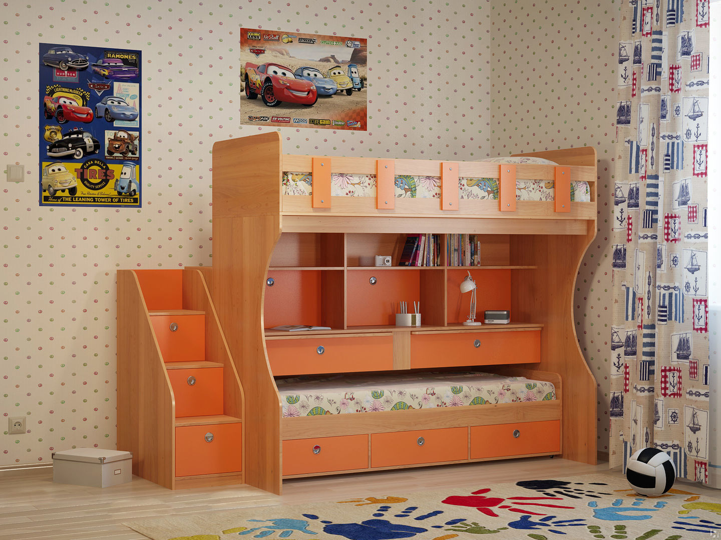 Die Schlafplätze der Möbel variieren und können 80 cm oder 90 cm mal 190 cm sein.Dieser Parameter sollte in Übereinstimmung mit der Größe des Kinderzimmers sowie dem Alter der Kinder gewählt werden.