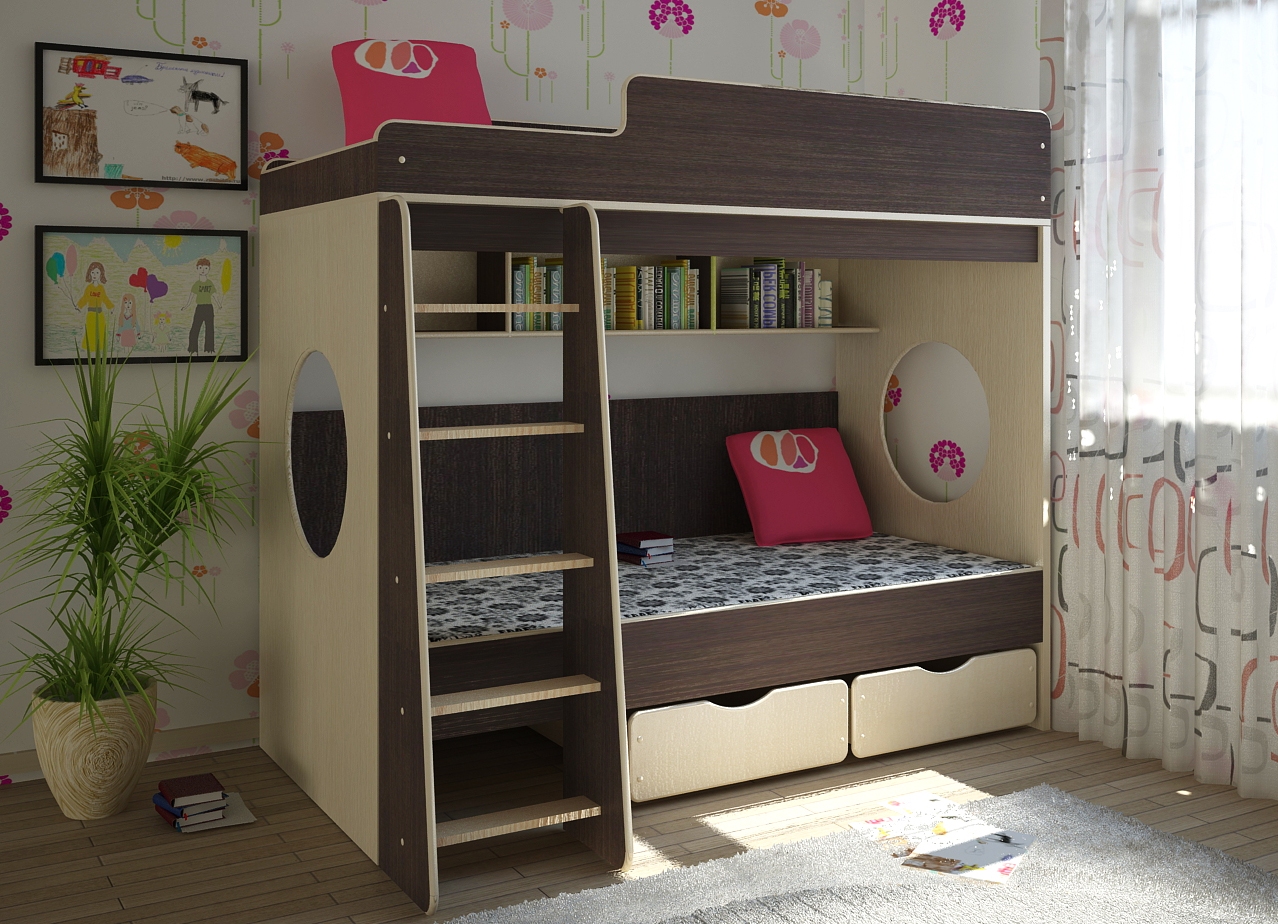 Der absolute und wichtigste Vorteil eines Etagenbettes für Kinder ist die Möglichkeit, ein Bett mit einer bequemen Anordnung von zwei Kindern zu belegen. Darüber hinaus verehren viele ältere Kinder die oberste Etage, denn dort können Sie Ihren eigenen Raum spüren, an den vergangenen Tag denken und vor Ihrem kleinen Bruder oder Ihrer Schwester vollständig geschützt sein.