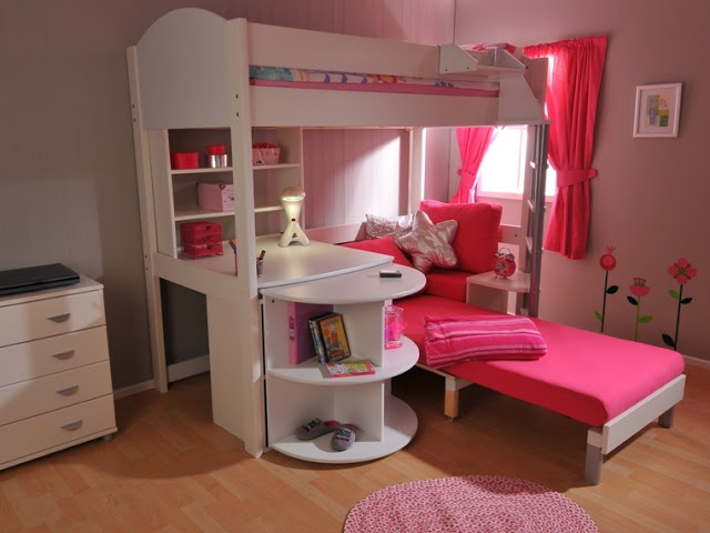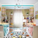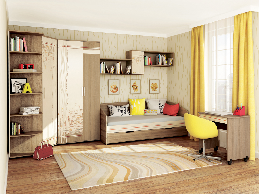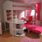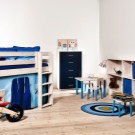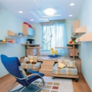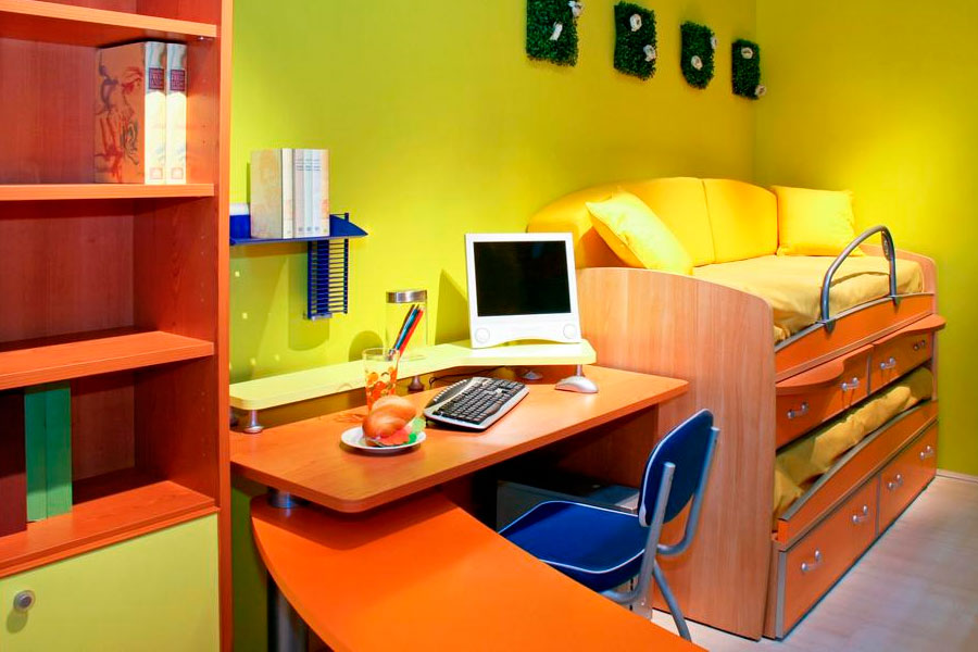 - In einem kleinen Raum ist es am besten, ein funktionelles Bett zu wählen, das den Schlaf- und Arbeitsraum sowie Regale und einen Schrank kombiniert oder sogar einen eingebauten Spielplatz hat.